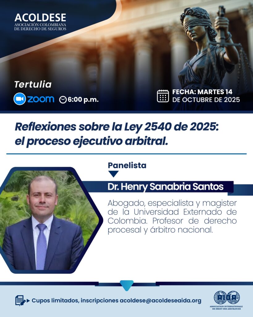 octubre 22, 2025Tertulia 14 de octubre – Reflexiones sobre la Ley 2540 de 2025: el proceso ejecutivo arbitralTema: Reflexiones sobre la Ley 2540 de 2025: el proceso ejecutivo arbitral. Invitado: Dr. Henry Sanabria Santos